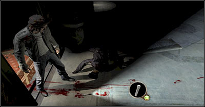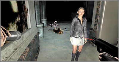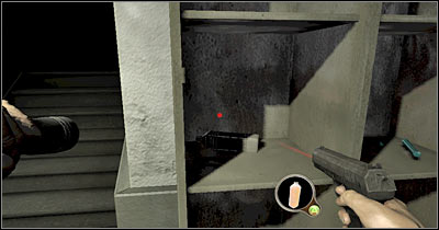 Watch a short cut-scene and leave the elevator. This is going to be a much larger area and you'll be allowed to explore it before focusing on the main goals. Start off by picking up a flashlight (screen). Obviously you should choose this object from your inventory. I would recommend having a flashlight in pair with the pistol. You should have plenty of bullets, so there's nothing you should be worried about. Take your time to explore the area around the body of a killed police officer. You should also read additional hints on how to use the flashlight. Remember that you should turn it off whenever you don't need it. Thankfully, finding new batteries for the flashlight is going to be extremely easy.