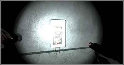 Now you should check the area to your right. Get behind the counter and you will come across a single door. Enter this small area and proceed towards the fuse box (screen). Press the action key to trigger a simple mini-game. Your objective will be to bring two cables closer to each other, however they can't touch. I would recommend that you practice finishing this mini-game, because you'll encounter more fuse boxes later on during the course of the game.