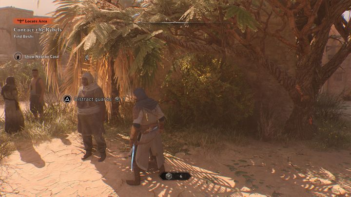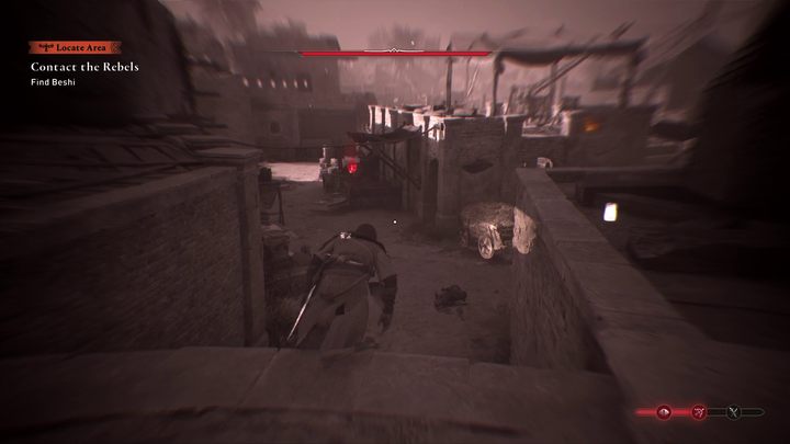 At the very beginning, we recommend hiring a street musician, who for 1 scholar token will distract some guards (you can find more about finding and using tokens on this guide page). Then sneak into the area from the right side. After eliminating/sneaking past a few single enemies, hide in a small building in the middle of the area.