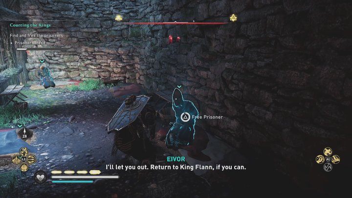 Barid, pretending to be completely drunk, directs Eivor to the prison in Aileach, where the Irish warriors are being held. Freeing them will be essential for reclaiming the city from the current rulers.