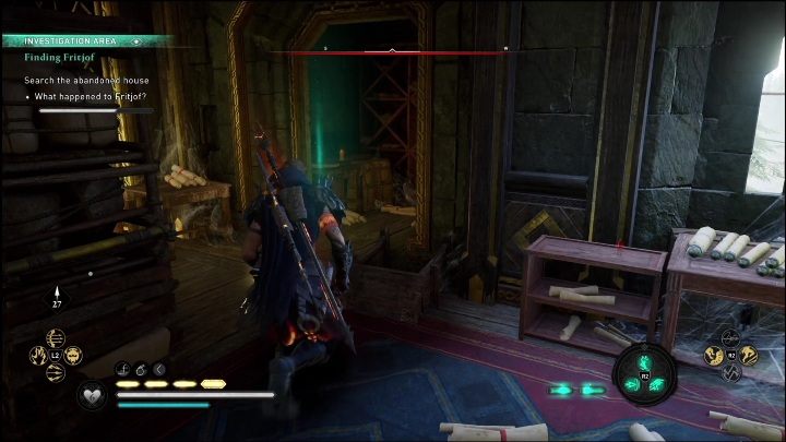 Search the house for clues regarding Fritjof. The clues can be found both on the ground and upper floor. To locate them, use Odin's Sight (R3 on consoles, V on PC). So that the items are highlighted.