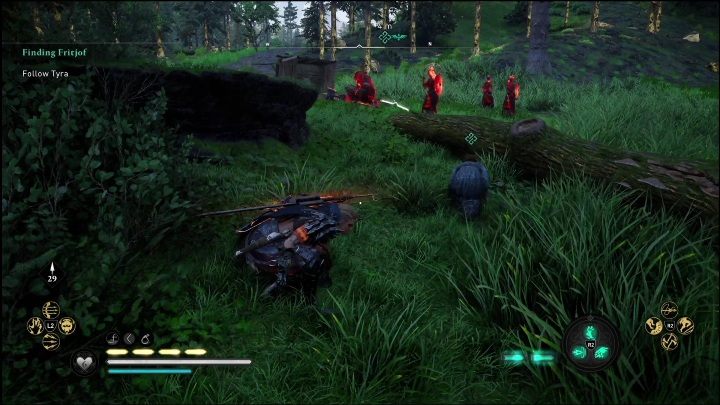 After getting rid of the opponents, use Odin's sight and follow the highlighted tracks. Along the way, Tyra will start to run again.