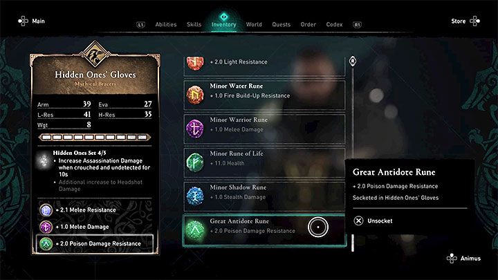 - Increase resistance to damage from fire or poison - you can use these types of runes in difficult fights if you know that you will meet enemies trying to set Eivor on fire or poison you.