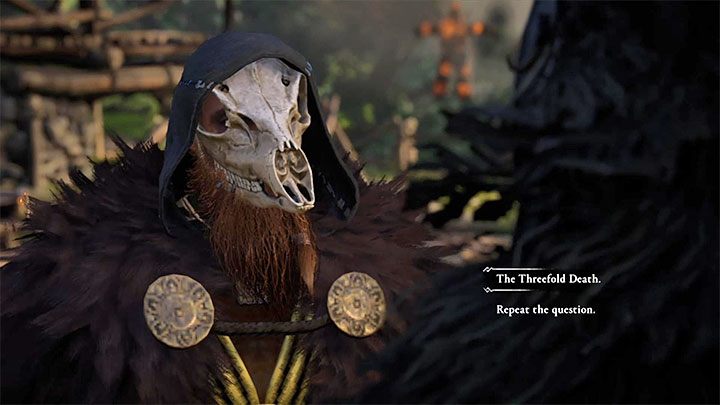 You can now return to the druid. Put on the hood before the conversation so that Eivor automatically puts on the previously acquired Mari Lwyd mask as well.