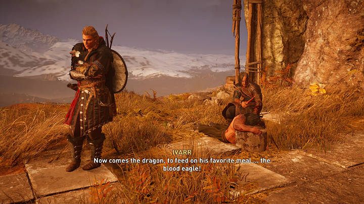 Once you're there, put the man on the ground and watch another cut-scene, in which Ivarr will show Eivor the birth of the Blood Eagle. After King Rhodri dies, Ivarr will point out that the saga they wrote together with Eivor must have some kind of ending, and he will admit to having murdered Ceolbert himself, which will lead to a fight.
