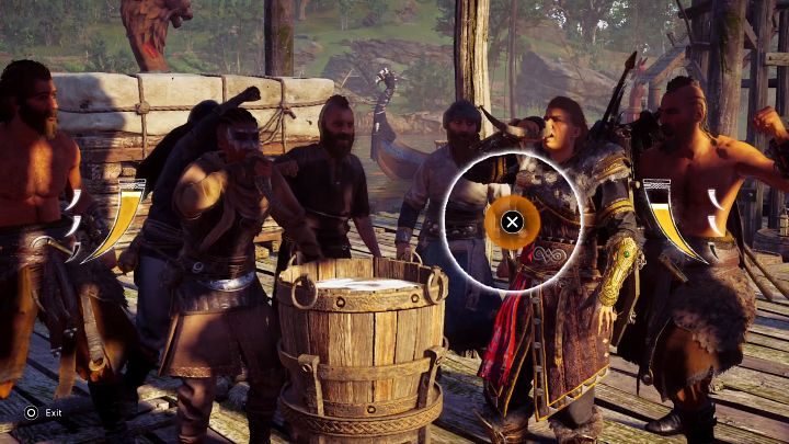 You will find Ama accompanied by two other warriors in the harbor and will have to face her in a drinking duel. After the trial, you will learn that Ama is one of Thorstein's most trusted people – he even entrusted her with the key to his hideout.
