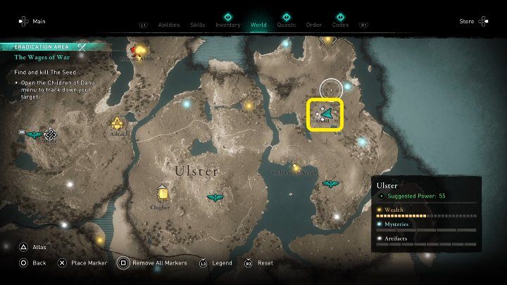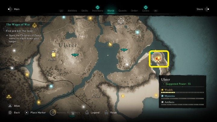 The Seed is hiding in Dunseverick, a well-guarded stronghold. If you want to stay stealthy, use the wooden beam outside the wall to get near the target. The Wages of War quest will end, and you will receive 3,400 XP as a reward.