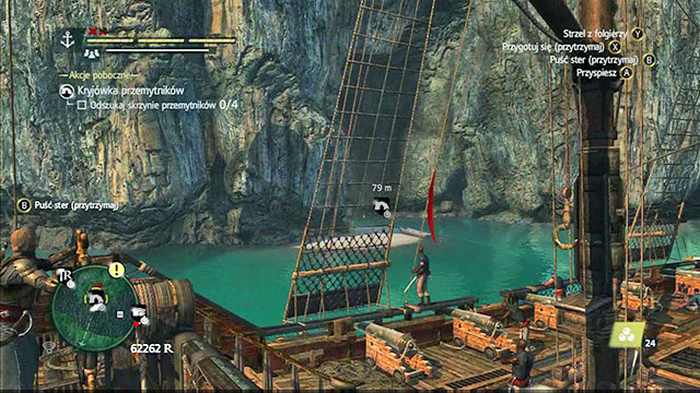 In both, there are a few scattered groups of pirates, including one beefsteak, one captain and a few gunners with muskets. They are, however deployed in positions that allow for their silent assassination one after another. In Jiguey, you will find the first enemy on the left, on the tall wooden structure, in Petite Caverne, on the right. Swim up to both silently, eliminate them and take a look around the cavern. You will quickly figure out how to get at the remaining smugglers.