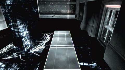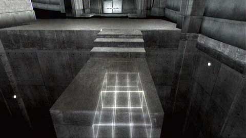 Once you get to the destination, turn right. In order to get to the other side of the black floor, you have to run over blocks you'll create. Remember to avoid orange grids. A centre of the room is safe, so you can wait there a while.