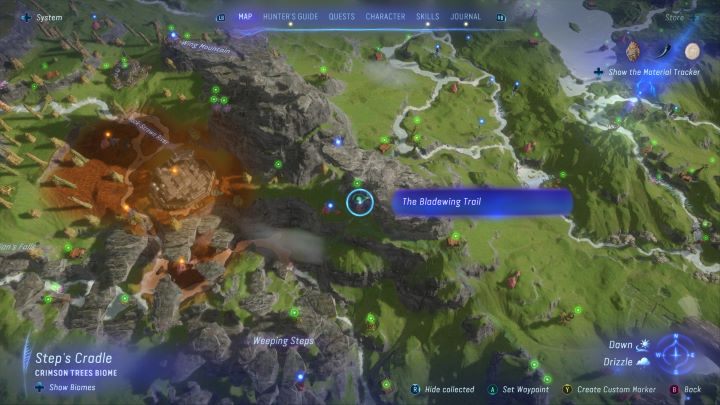 - To start a Bladewing Trail, you must first find a nest of Bladewing Moths (these are marked on your map) and interact with it. The moths will leave the nest and travel to a specific direction - you must follow them. They leave behind a blue trail that will help you locate them. At the destination, there are hidden fruits that you need to collect. These are ingredients for cooking which effect is more powerful than other similar reagents.