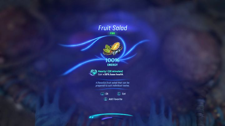 - You can replenish energy thanks to consumable items like, e.g. Fresh RDA Ration (found in RDA Food Containers), loot from plants (e.g. Shelter Fruit from the Leopard Palm) or meals cooked at cooking stations.