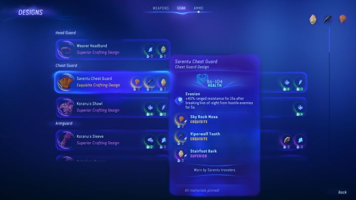 - For completing 3 Sarentu Totems, you'll receive the design for Sarentu Chest Guard.