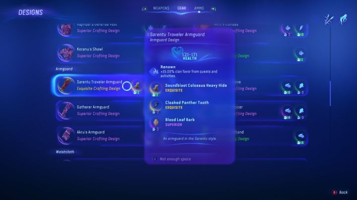 - For completing 5 totems you'll receive the design for Sarentu Traveler Armguard.
