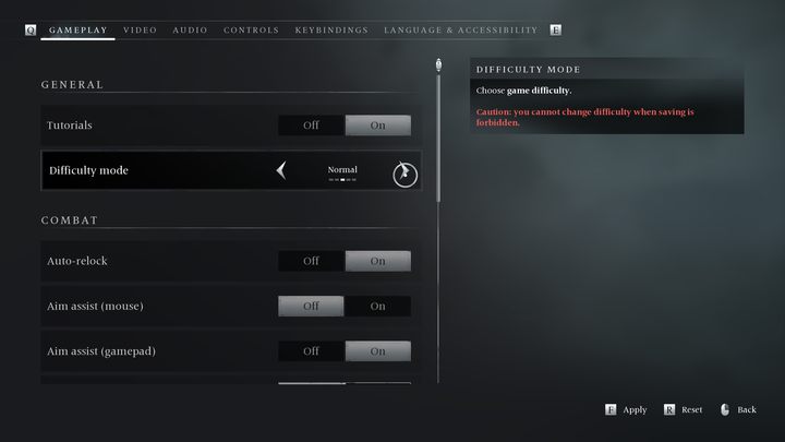 However, the option to change the difficulty level will be blocked in situations where you cannot freely save the game. Such situations include: dialogues, cut-scenes, and fights with opponents and bosses.