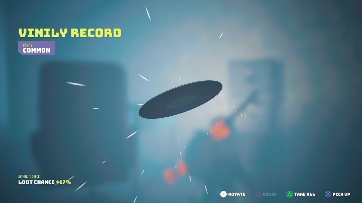 At first, you must get the vinyl located in the blue building, to the left of the gramophone.