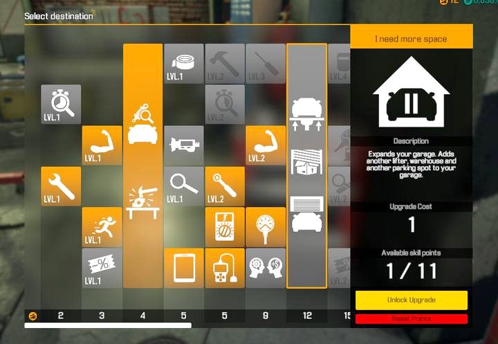 Further progress and unlocking new upgrades is based mostly on your experience. More complicated orders (in the beginning you deal with brakes, suspension and engine timing) are unlocked when you have more experience, new abilities as well as upgrades for your workshop received after every few levels. Check out this chapter if you want to know how to earn experience faster.