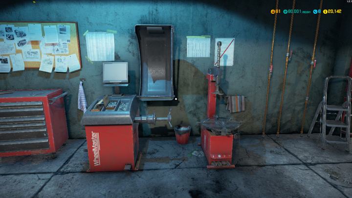 This little fella can help you to take a tire off a rim or balance a wheel. Every wheel has to be balanced before being mounted on a car. Wheels that aren't balanced are marked with an icon visible in the bottom right corner. In order to repair a rim, you have to take the tire off. Remember that the dimensions of tires and rims have to correspond.