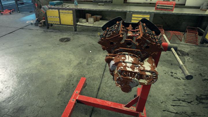 Garage level 3 required. In order to do some more advanced repairs on the engine, you will need an engine stand. After placing the engine on it, you can easily rotate the engine. After taking it off, the engine will be moved to your inventory. Repairing an engine on the stand is much more convenient: you don't have to lift the car all the time and the access to the whole engine is very easy. After removing an engine from a car, the car can be moved to the parking lot to save space.