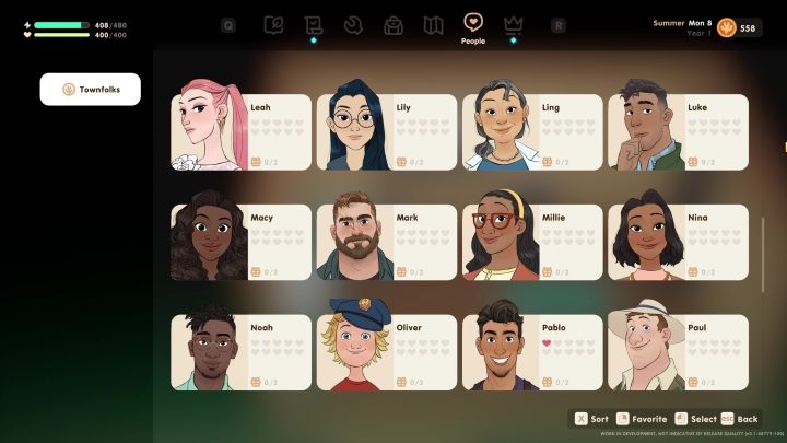 The following page of the guide informs what characters you can meet in the game and when their birthday is. It is worth knowing this to prepare the right gifts.