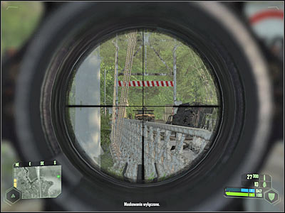 There's a large bridge to the east of your current location. You won't have to go there, but it would be a good idea to secure that area. Use your scope in order to take out enemy units from a safe distance. Start off with the gunner (humvee), because he poses a serious threat. Don't forget to go back for supplies once you've eliminated all enemy units.