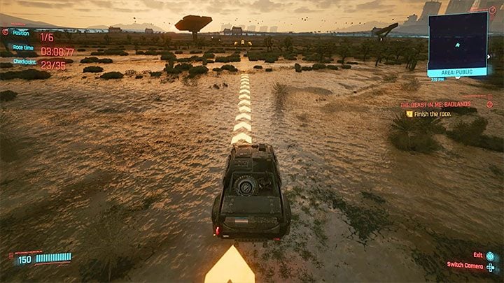 During the race, you should avoid making big jumps, which can cause unnecessary trouble, and colliding with large boulders. In the later stages of the Badlands race there will be a sandstorm, but the guiding arrows will still be visible on the ground.