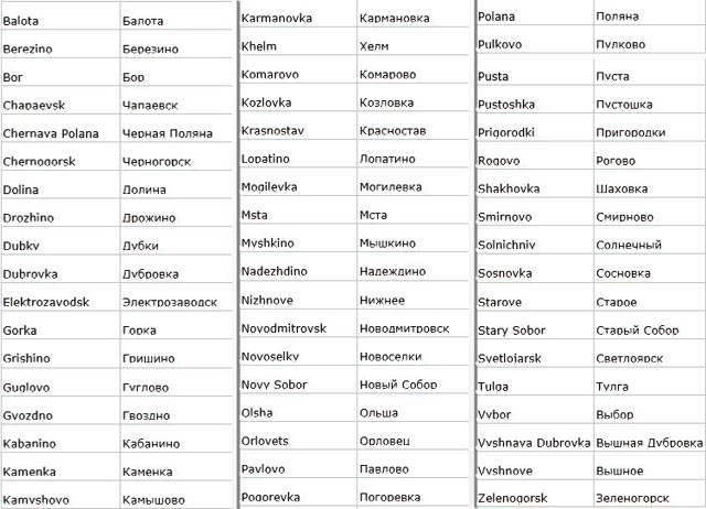From Chapter 3 you learn about cities' tables. Full list of cities: