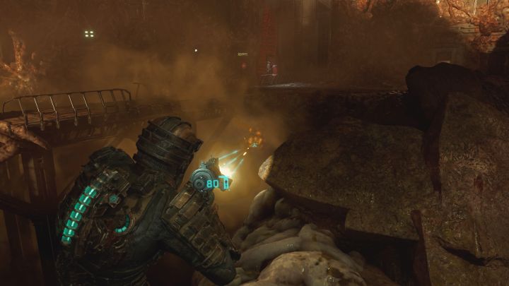 You cannot explore the area fully until you remove the tendrils. Locate the growths and destroy them. After the first such action, a large group of Necromorphs will appear - retreat quickly to attack them from a greater distance and keep them at it for as long as you can.