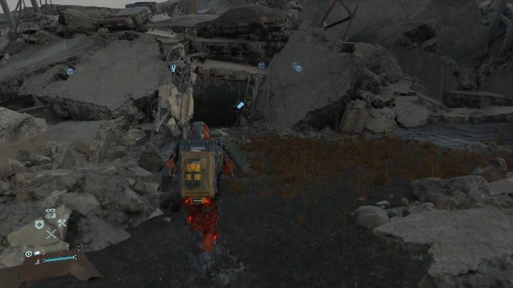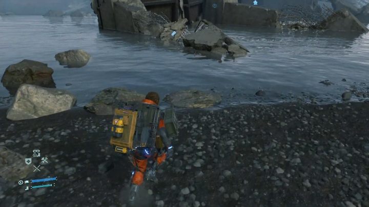 By the blue container, right next to the water you will find Death Stranding/Low Roar.