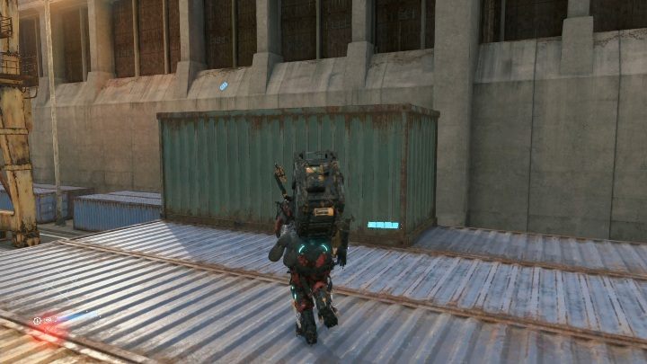 There's a truck in one of the entrances to the building. You got to get on it to obtain the memory chip - Frame Arms: Kagetor.