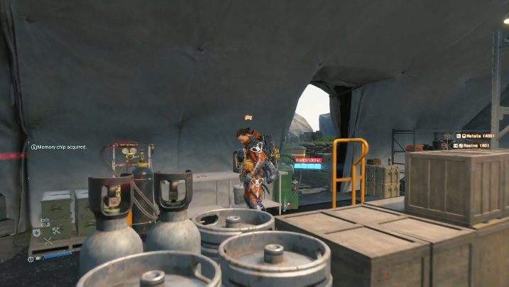 Step away from the enemy camp and enter the rocky wilderness. That's where you'll find the memory chip.