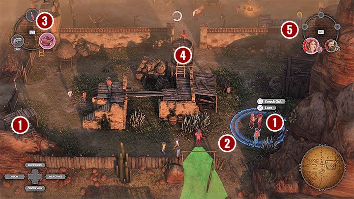 - The bandit from point 5 will make eliminating the remaining enemies difficult. You can reach him in person with Kate (watch out for the Long Coat!) or blind him with perfume so Hector can gradually clean the area.
