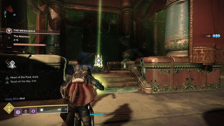 To score Triumph in this stage of The Menagerie, each player must ignite one lamp. On a team made up of random players, this can be difficult, but on a pre-made team, you can certainly handle this task easily.