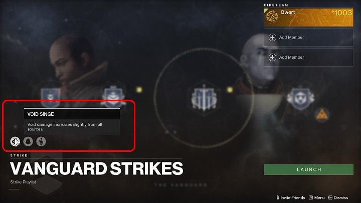 You can check what modifications the current Strike has in the bottom left corner of the screen when you click on the mission. If you hover the pointer over each icon, you will receive appropriate information. Unlike Nightfall missions, Strikes have only one difficulty level.