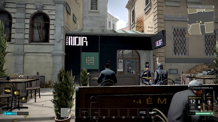 The merchant Tars (M4,6) is involved in the black market. You can buy basic weapons from him (Assault rifle, 10mm pistol, Machine pistol) and modifications (4x sight, scopes, laser sight). Aside from that, he has the parts to create upgrades, Hypostims, biocell and numerous ammo. Nevertheless, the most important are 2 Praxis kits (1000 credits each).