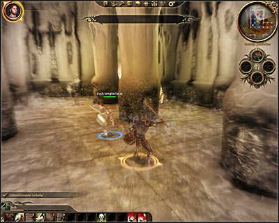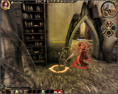 Make a few steps forward and talk to a friendly character Niall (M35, 3). Listen to what he has to say about the Fade and then use a nearby portal (M35, 4). Defeat a single demon and talk to the Mage apprentice (M35, 5). During the conversation he'll teach you how to transform yourself into a mouse and you can test this feature right away. Notice that you can also camouflage yourself. This may come in handy while trying to avoid more powerful creatures instead of fighting them.