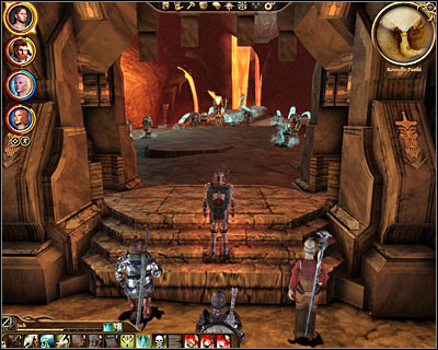 Start off by heading south and it shouldn't take too long until you come across allied units (M58, 2) defending themselves against the darkspawn. Naturally you should assist your dwarven friends in dealing with the monsters and it shouldn't be too hard for you to defeat all the incoming waves. You can even encourage some of the monsters standing in the back to come here, so you won't have to fight them on your own later on in the game. Once it's safe talk to Kardol, but he won't share any useful information with you.