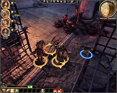 Keep heading north-east and don't be surprised by the fact that a lot of hurlocks and genlocks will stand in your way. Try using the mage in your team to cast powerful spells and don't forget to keep your archers and mages away from the main battles. Remain in one area until you've defeated each group and don't forget to spot and kill enemy archers sooner rather than later. Eventually you'll make your way to the main gate of the tower (M22, 9) and this is where you'll meet an alpha Hurlock. Use the same tactics as before and you should be fine.