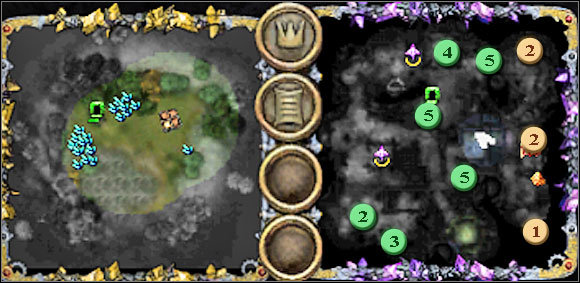 We move to the north eliminating enemies who attack us. After reaching the end of the corridor we turn to the east and we reach the room where we find Potion Laboratory in. This device serves for identifying of every unknown elixirs which we will find in this chapter. Identifying of them all will give the extra gratuity to us after the end of the mission. Nearby there is a Tranquil Fountain which will speed up the regeneration of energy of our units. We can see also a statue covered with bats - when we pass by it undeads attack us - we move further away after the quick fight.