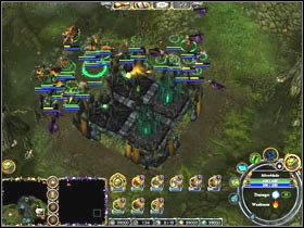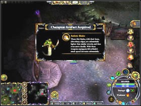 At the beginning I propose to improve walls of our camp and to train archers - one of Umbragen bases is located on the north-east. It is plateau and flying units attack us, so the combination of archers plus towers will be enough completely to the defense against them. After constructing the defense and the improvement in our army, we set off to the east in order to encounter the infected teleport after a while. His other end is located by the Umbragen base so he is unavailable for the time being. Continuing the march to the east we encounter Troglodyte Hurler #1 calls us for help in freeing #1a turtles locked up by Umbragen and destroying the post of dark elves #1b. So we move to the north in order to reach locked up turtles and their executioners. We settle matters with them and destroy the fence, so turtles are able to return to their coach. Now it is time for the Umbragen post, being located on the east. After the hard fight and defeating an opponent, it turns out that we have destroyed guards of Black Dragon Statue #1a (tip - if Blackclaw is our Champion we receive the extra #6 task. We have to choose one of possible options - to devote one's blood (blue stone) or of one's subordinates (red stone, we have to collect 4 of them in the #6a circle). We will receive Champion Artifact in both cases.). We are able now to return to the guard of turtles and to take the prize away and get to know methods of the training of these creatures.