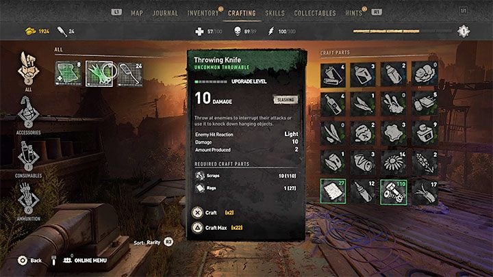 This page of the Dying Light 2 game guide explains how crafting works - how to obtain schematics and materials and how to produce new items.