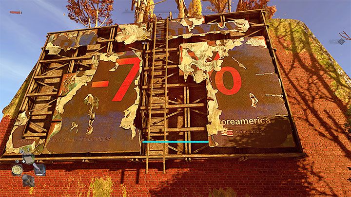 Jump off the roof and head towards the neighboring building. Your task is to reach its roof and you can start climbing in the place shown in the picture - jump to the next ledges, boards and poles to reach further balconies. Be careful not to fall down, as it may result in serious injury or even death.