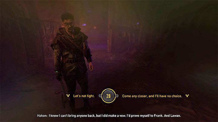 You'll start a conversation with Hakon during which you must make a choice under a time limit - decide whether you wish to duel him or not.