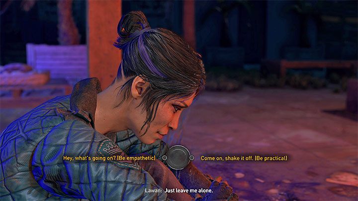 During the conversation with Lawan you can be empathetic or more pragmatic, as well as give her advice regarding Hakon which won't influence the further course of events. You can also optionally ask her a few questions.