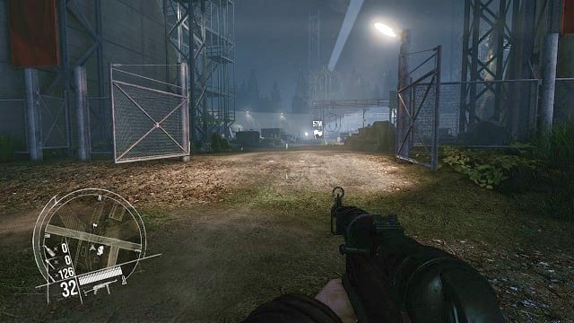 After dealing with all of the factory guards, continue towards the marker on the map. After a short journey, you will arrive at a small building, inside of which there's a switch controlling the main gate of the main facility complex. Unfortunately, there's an machinegun emplacement located near that entrance - if you want to get inside, you will first have to deal with the MG crew.