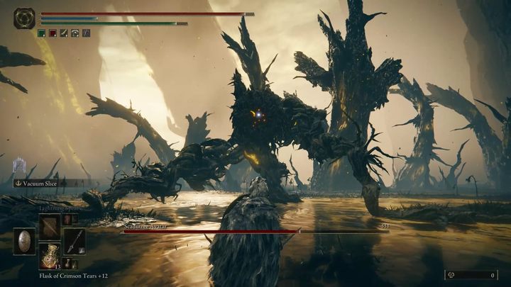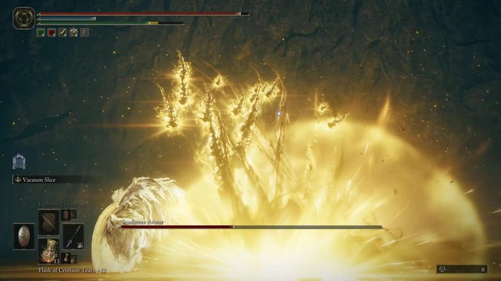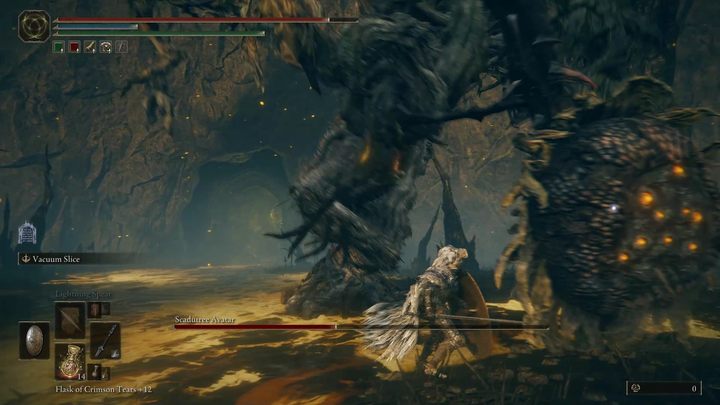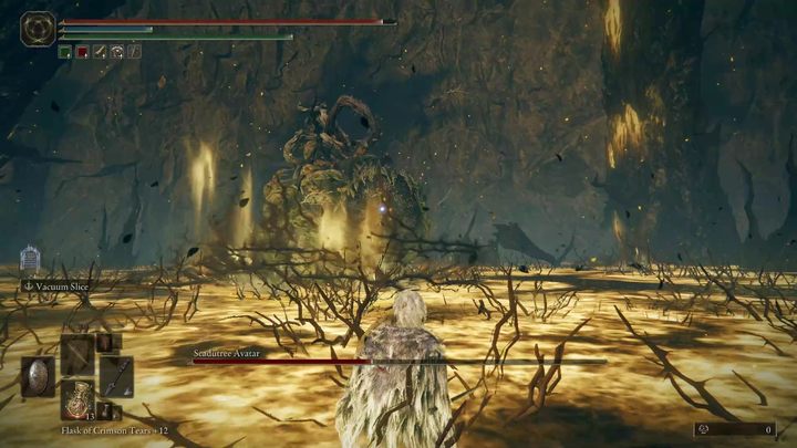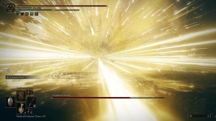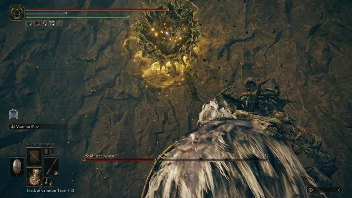 Scadutree Avatar may seem like a very simple boss at first, as he has quite little health. However, it will quickly turn out that the enemy is much more demanding - when you empty its health bar, you will have to deal a critical hit to knock him down. The enemy will rise from the dead twice - you must kill him three times to win.