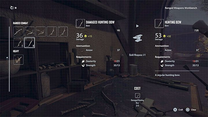 Commentary: This is one of the crafting-related trophies, or, to be specific, weaponsmithing. You can perform this activity by using an appropriate workbench, different for melee and ranged weapons (found, for example, at the Bastion). You must have the resources necessary to craft the weapon. These can be various crafting materials (such as scrap) or lower quality weapons you must sacrifice to create a better weapon (example pictured above). Each such action counts to this achievement.