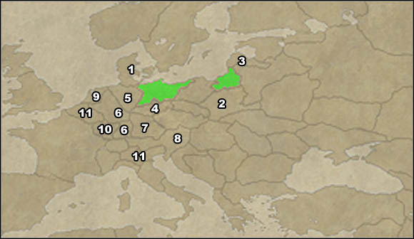 You have very little land, the two trading partners and many regions to develop. You have to unite the land. Due to the small number of ports, you will have a few customers on other continents. However, this does not change the fact that Prussia can make a living from taxes. Note, that you will start with relatively strong army.