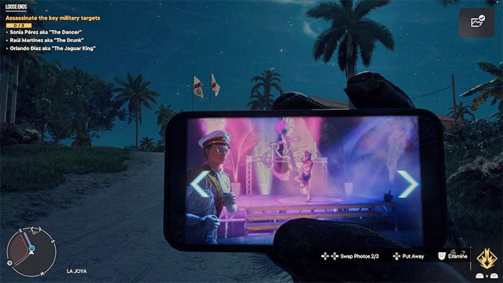 This page of the Far Cry 6 game guide contains the walkthrough for the Yaran story titled Loose Ends, a side quest in El Este. Our guide explains, among other things, how to destroy evidence for Rosa and how to correctly identify and assassinate the 3 military targets (Orlando Diaz, Raul Martinez, Sonia Perez) during the show.