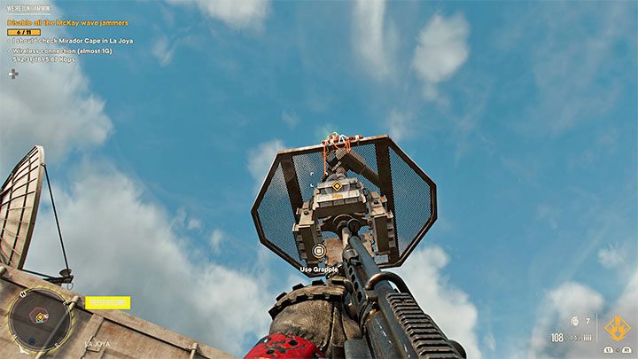 To reach the jammers represented by numbers 7 and 8 on the map you must stand under the upper balcony in a way that will allow you to use your grapple (as shown on the picture).