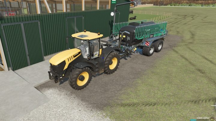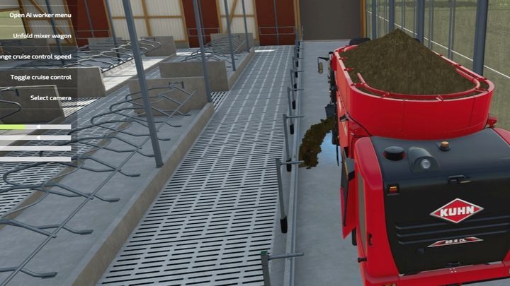 Manure production is a bigger problem. For it to be produced, you have to supply straw to the cows. In addition, you must build a tank next to the barn where manure will be stored. Then you can fill the trailer or spreader manually or by positioning yourself at the loading icon located next to the building.